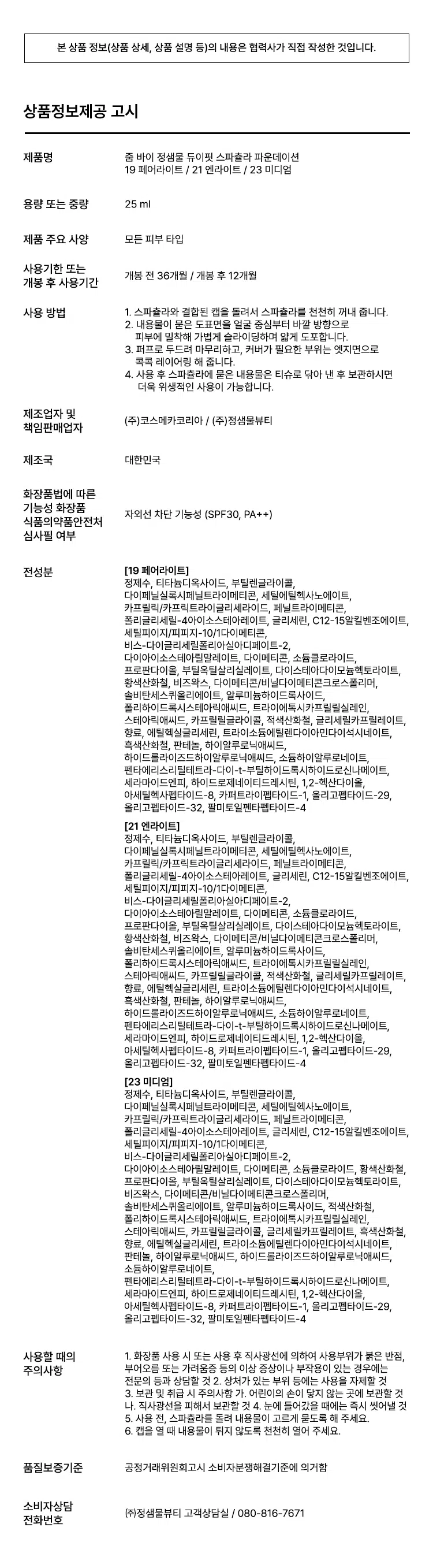 [21호 엔라이트]줌 바이 정샘물 듀이핏 스파츌라 파운데이션 25 ml