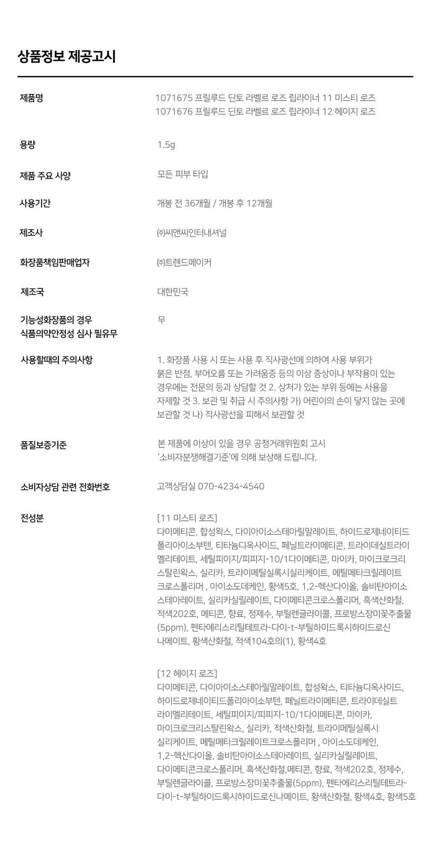 [12 헤이지 로즈]프릴루드 딘토 라벨르로즈 립라이너